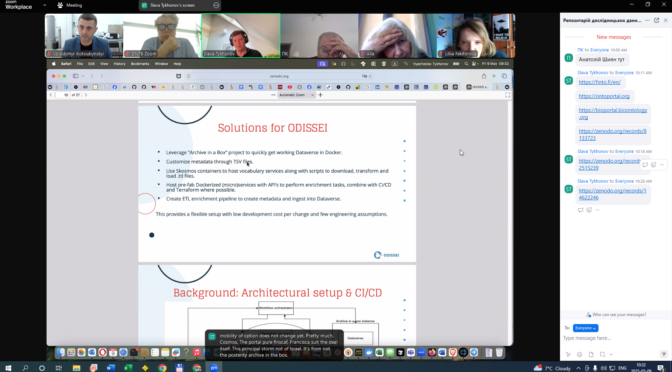 9 травня 2025 року відбулася організована командою Державної науково-технічна бібліотека України  ( директор Алла Жарінова та заступник директора з наукової роботи та міжнародної співпраці Тетяна Ярошенко, https://dntb.gov.ua ) онлайн-зустріч з фахівцем у галузі відкритих даних та репозитарної інфраструктури В’ячеславом Тихоновим (https://dataverse.nl), в якій прийняв участь керівник PNU-OpenLab (https://open-lab.pnu.edu.ua/) Володимир Коцюбинський. Зустріч була присвячена обговоренню стратегічних підходів до формування національної системи наукових репозитаріїв, сумісної з принципами FAIR. Увага була зосереджена на функціях контрольованих словників, зокрема Finto, BioPortal та OntoPortal, які забезпечують інтеропера­бельність даних у наукових системах. Було презентовано можливості платформи Dataverse, особливості  її використання в Нідерландах для академічного сектору та перспективи Dataverse як технічної та концептуальної основи побудови української моделі репозитарної системи.